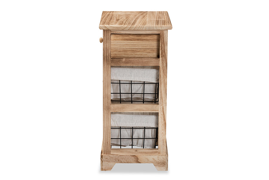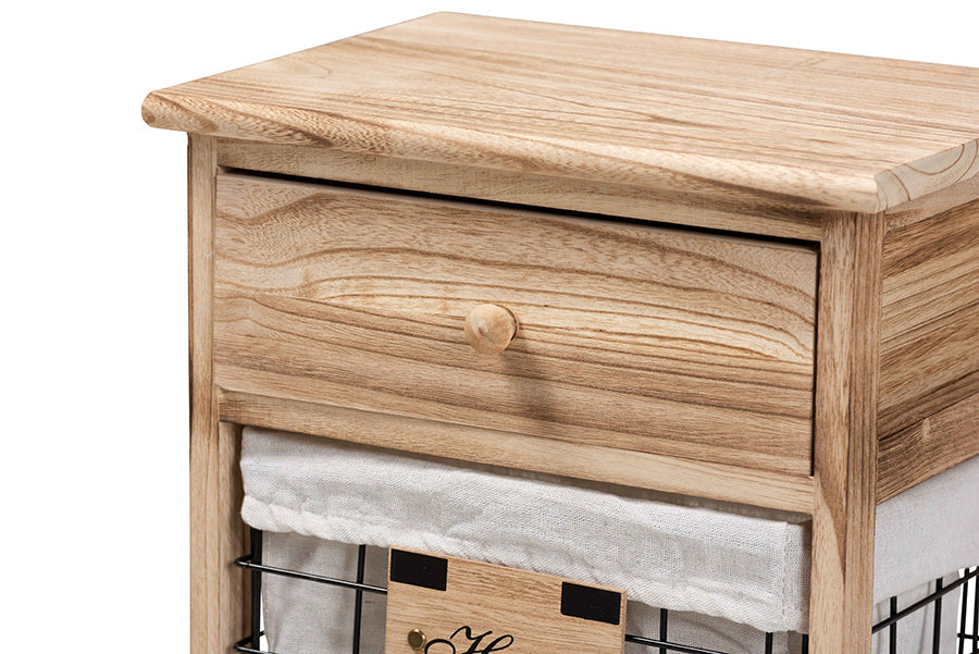 Generate a cozy, homey feel in your space with the fantastic Marion end table. Made in China, this handy piece is comprised of a sturdy wood frame fitted with metal baskets. One drawer and two baskets fitted with wood embellishments provide plentiful storage space to organize your daily routine. Requiring minor assembly, the Marion features fabric basket liners for a charming, contemporary touch. A convenient piece that radiates modern personality, the Marion end table elevates any interior.