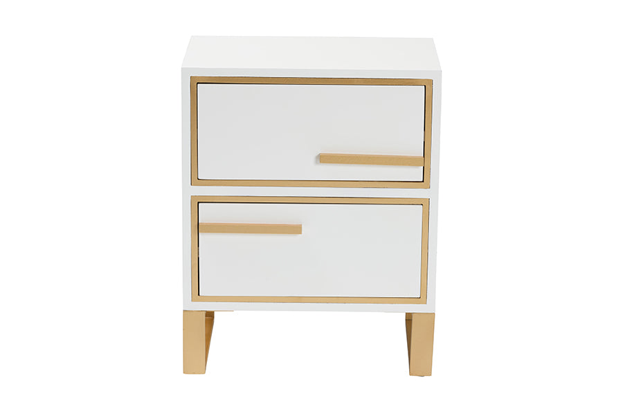 Enrich the character of your interior with the luxurious efficacy of the Grayson end table. Made in China, this stunning piece consists of a solid wood frame accentuated with sleek visual texture. Two drawers offer space to organize household essentials while elongated drawer handles create a striking display of crisp geometry. The Grayson requires assembly and features rectangular metal legs for excellent stability and support in sleek design. Embracing the glamour of modern minimalism, the Grayson end table is sure to boost any household layout.