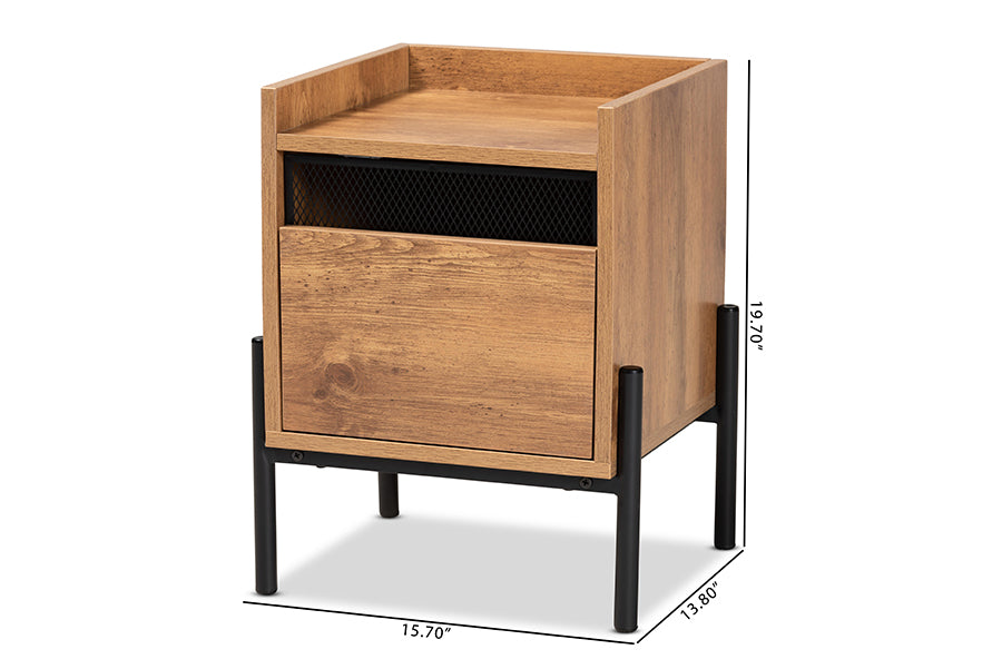 Embolden the character of your space with the stunning Kalena end table. Made in China, this striking piece is constructed from sturdy wood and embellished with metal accents. Two shelves behind the door provide secure storage space while reserving the tabletop to serve as a pedestal for decorative items. Requiring assembly, the Kalena features slim metal legs for excellent support that lends a sleek, modern touch. Mesh metal accents lend a cool, industrial feel, making the Kalena end table a transformative addition to any space.
