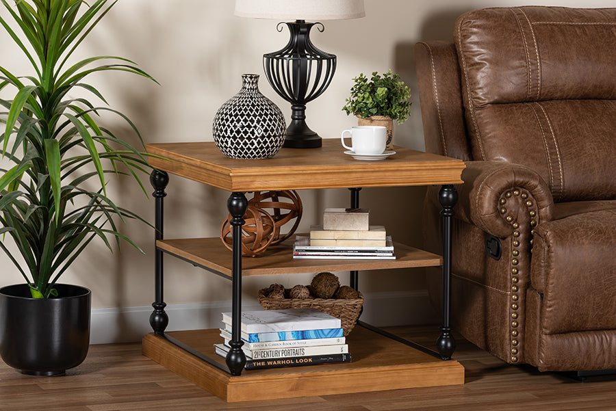 Endow your common area with the Lena end table as a timeless yet efficient space anchor. Made in China, this stunning piece takes inspiration from industrial design with a solid metal frame fitted with wood shelves. Three tiers of square-shaped shelves offer space for both storage and daily use while radiating soothing tones form the wood. The Lena requires assembly and features turned metal legs for excellent stability and support while lending an ornate feel. Beautifully crafted edges form a superb silhouette, making the Lena end table a remarkable household accessory.