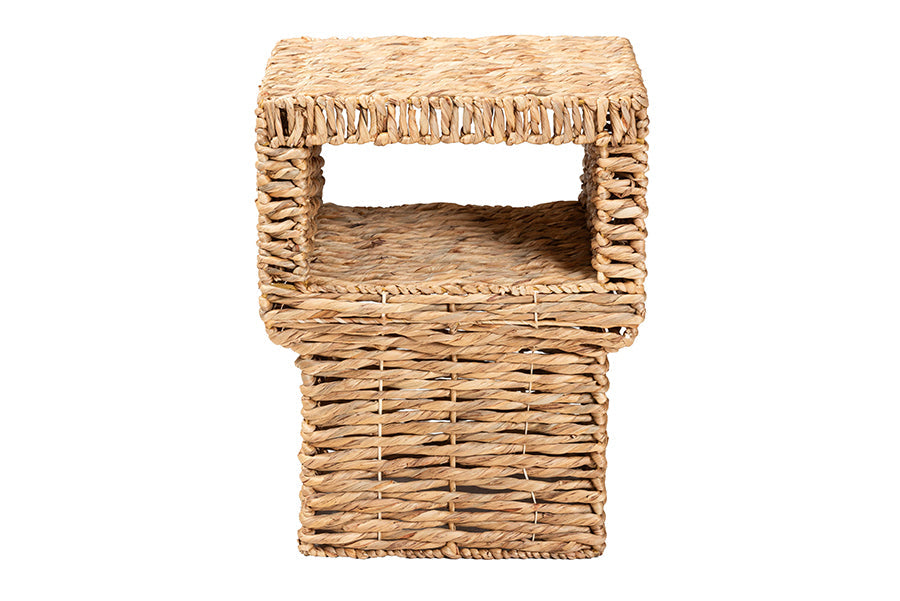 Supplement the cozy nature of your space with the serene, exotic poise of the Pauline end table. Made in Vietnam, this bohemian piece consists of a sturdy wood frame wrapped in beautifully woven seagrass. Its square tabletop serves as an ideal accessory for daily use, while the open shelf adeptly organizes common items. The Pauline will arrive fully assembled and it is recommended to be used with a fitted glass tabletop for proper maintenance. With a modest yet eye-catching design, the Pauline is sure to find its place in any layout. (Glass tabletop not included).