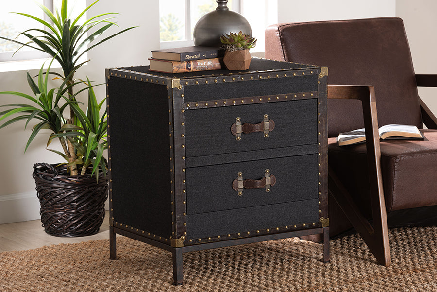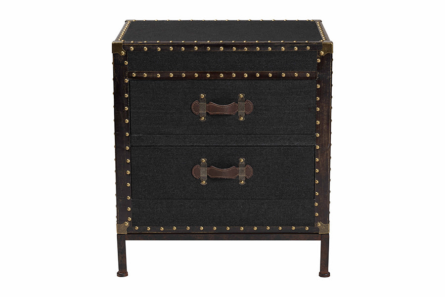 Lorand Black Canvas 2-Drawer End Table Trunk