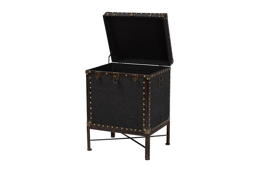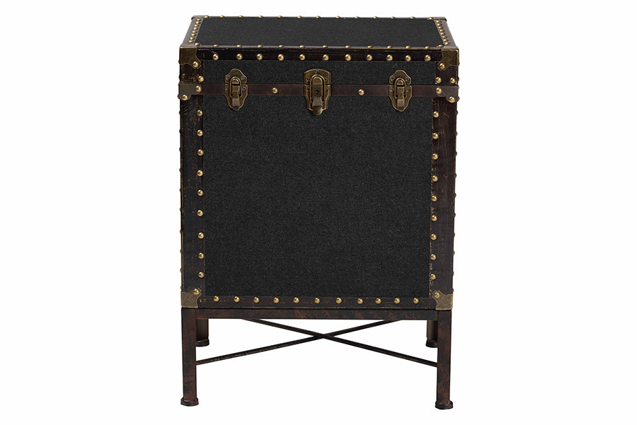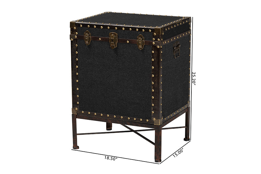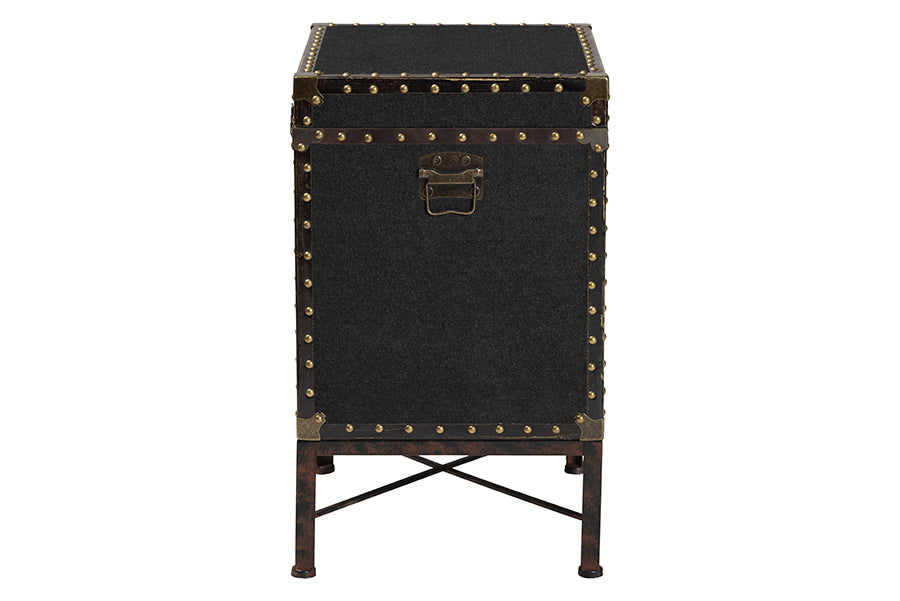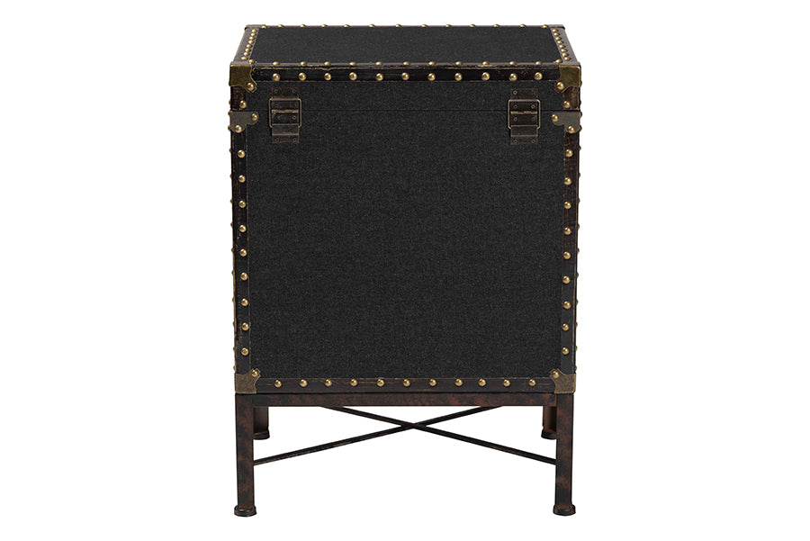 Lend a touch of industrial-style flair to your space with the stunning Lorand end table. Tactfully crafted in China, this vintage inspired piece consists of a sturdy wood frame wrapped in smooth canvas. Metal-plated edges and studded embellishments highlight the robust nature of the piece while the lift-top compartment offers convenient storage. The Lorand will arrive fully assembled and utilizes minimalist metal base with rounded legs for excellent stability and support. Beautifully shaped leather strips complete the look, making the Lorand end table an enthralling addition to any space.