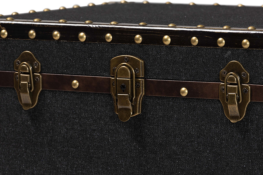 Material: MDF(Frame)/Metal(Legs & Nail Head Trim)/Canvas(Outer Surface)/Aluminum Sheet (Frame Boarder)/PU(Handle)