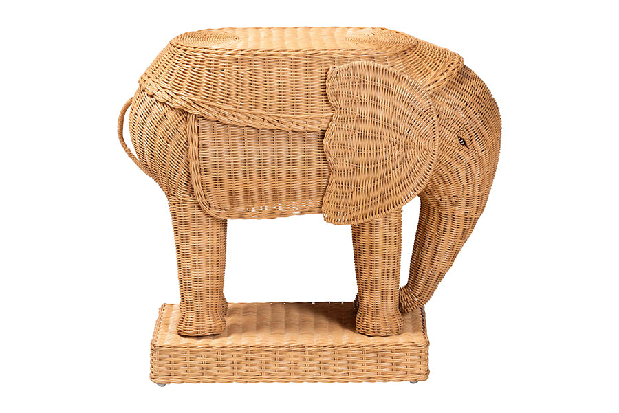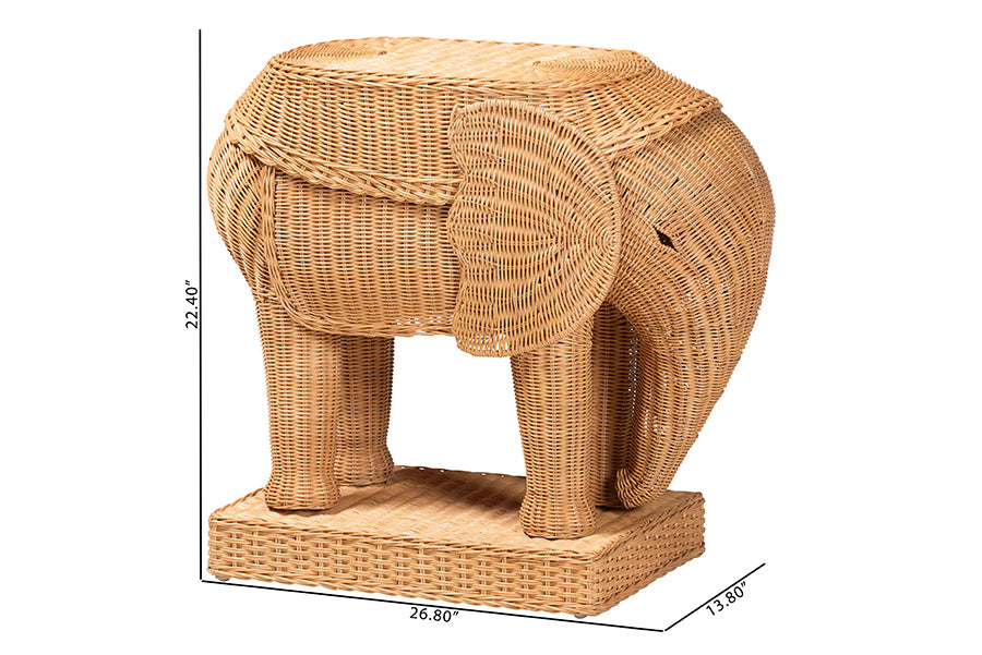 Embellish your space with impressive display of rustic craftsmanship that is the Leandra end table. Made in Indonesia, this bohemian piece consists of a sturdy teak wood frame adeptly embellished with natural rattan by remarkably skilled artisans. The piece is shaped in the visage of a distinguished elephant to serve as a convenient tabletop while showcasing the artistic potential of rattan. The Leandra will arrive fully assembled and features braided detailing that imbue the table with a display of refinement. Crafted with impeccable technique, the Leandra end table brings a serene aura to any interior.