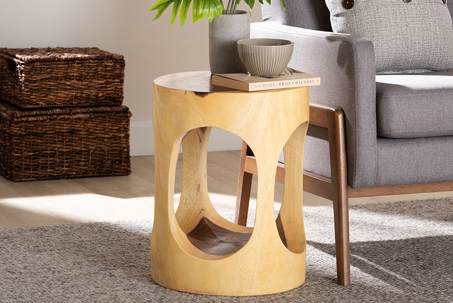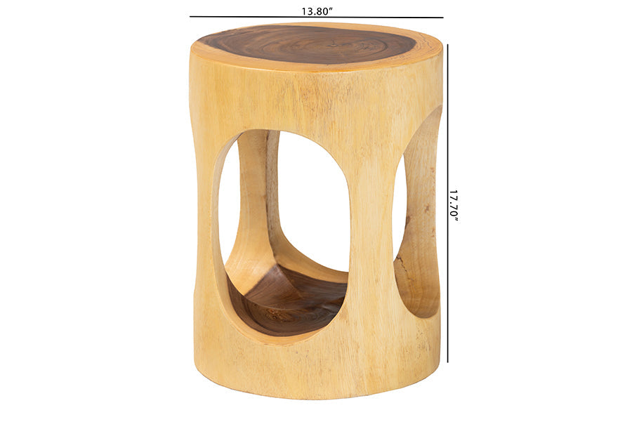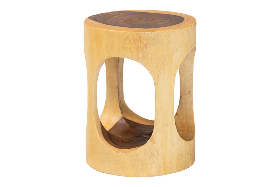 Expert craftsmanship reveals the hidden beauty of nature with the lovely Isabel end table. Made in Indonesia, this bohemian piece is expertly handcarved from the trunk of a suar wood tree. Its barrel silhouette is uniquely carved to showcase the rich texture of both the interior and exterior grandeur of the piece. The Isabel will arrive fully assembled and showcases the raw grain and natural state of the wood, resulting in no two pieces being exactly alike. With a handy round tabletop, the Isabel end table is a fantastic household complement.