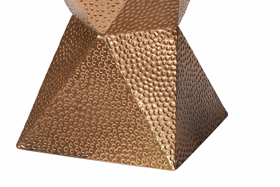 Introduce a touch of style and functionality to any arrangement with the lovely Okinawa end table. Made in China, this industrial style piece is crafted from solid metal. Its sleek hourglass silhouette offers convenient table space while crisp angled distinguish its vibrant silhouette. The Okinawa will arrive fully assembled and features a unique hammered exterior that is unique across each piece. Perfect for any patio, the Okinawa outdoor end table refreshes any layout.
