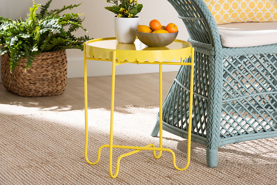 Exuberant design arrives to brighten any outdoor seating area with the lovely Lapis end table. Crafted in China, this industrial piece is crafted from solid metal. Its round tabletop features a scalloped trim that distinguishes the piece with flowing geometry. The Lapis requires minimal assembly and features a minimalist, open frame that allows light to flow naturally while providing excellent stability. Perfect for any patio, porch, or deck area, the Lapis end table is a vibrant addition.