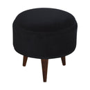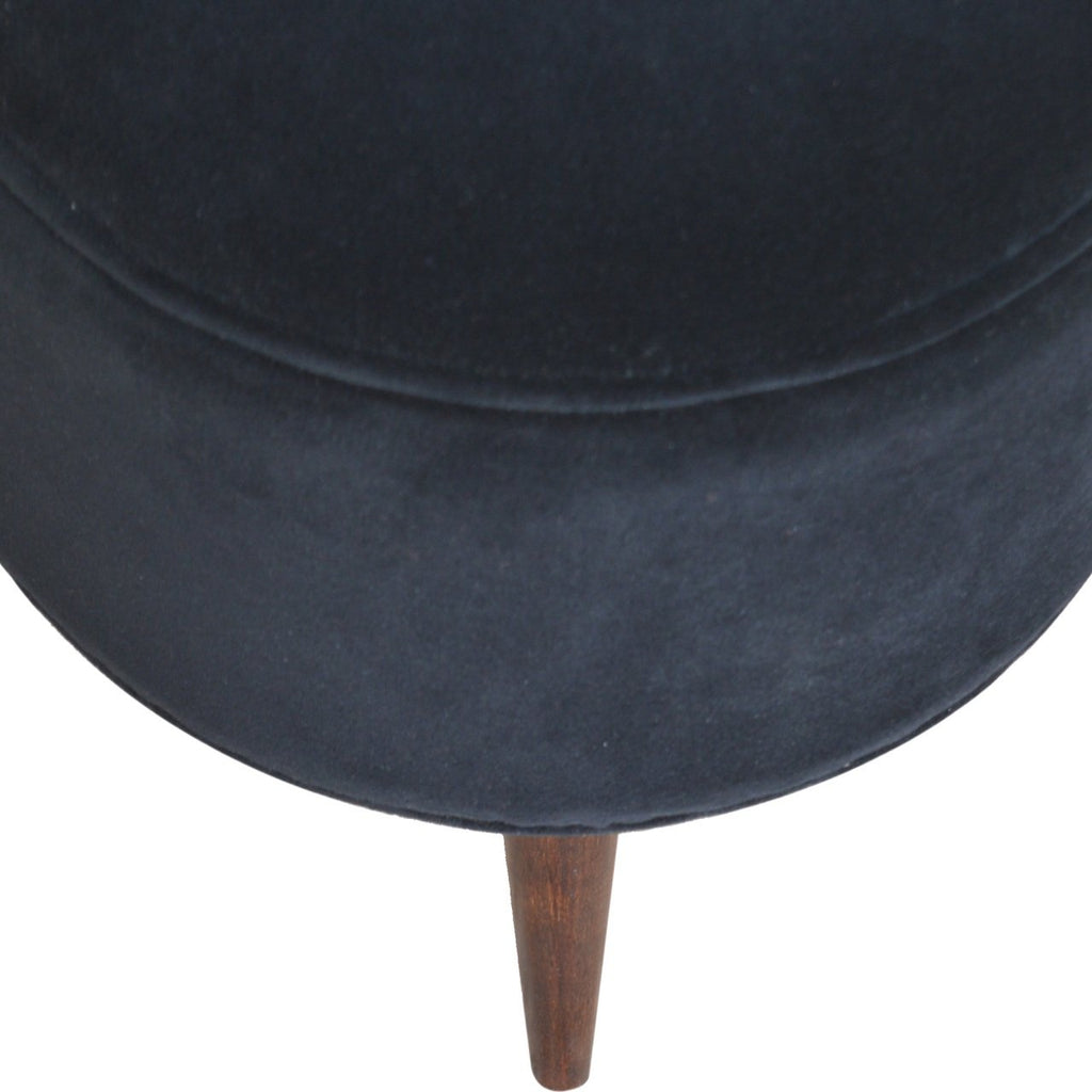 The beautiful and fashionable footstool is the perfect addition to any bedroom or living room. It is available in several different colors and has been upholstered in a luxurious black cotton velvet fabric perfect for putting your feet up, another feature of this is the 3 Nordic style legs in a walnut finish. You can use it as a handbag stand or just as an accent piece in the home.