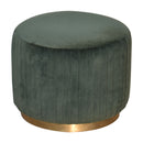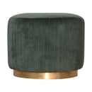 This beautiful and fashionable footstool will make the perfect addition to any bedroom or living room. It has been upholstered in a luxurious emerald green cotton velvet fabric with a pleated design featuring a gold brass base. Perfect for putting your feet up, using as a handbag stand, or as an accent piece in the home.