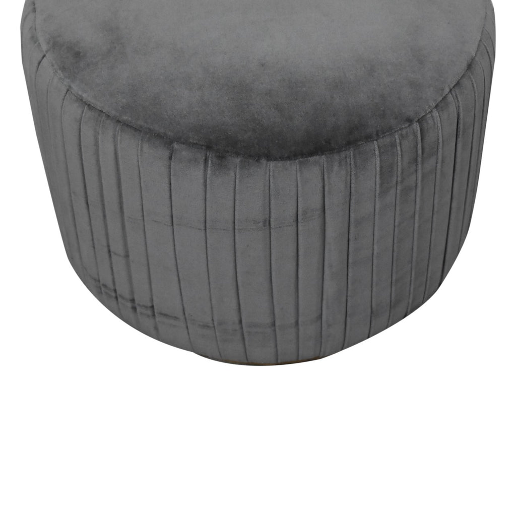 Grey Velvet Pleated Footstool