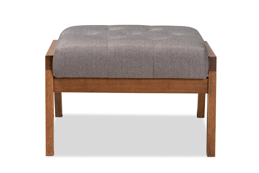 Kalimantan Gray Fabric Upholstered Walnut Footstool