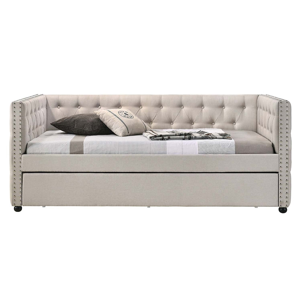 Maximize the space in your guest room with this Romona daybed & trundle. An excellent choice for any guest room that doubles as a study, or as extra sleeping space in a bedroom. Beautiful, timeless details such as button tufting and nail-head trim accents give off the right amount of luxury and sophistication. The pull-out trundle is excellent for accommodating all your guests