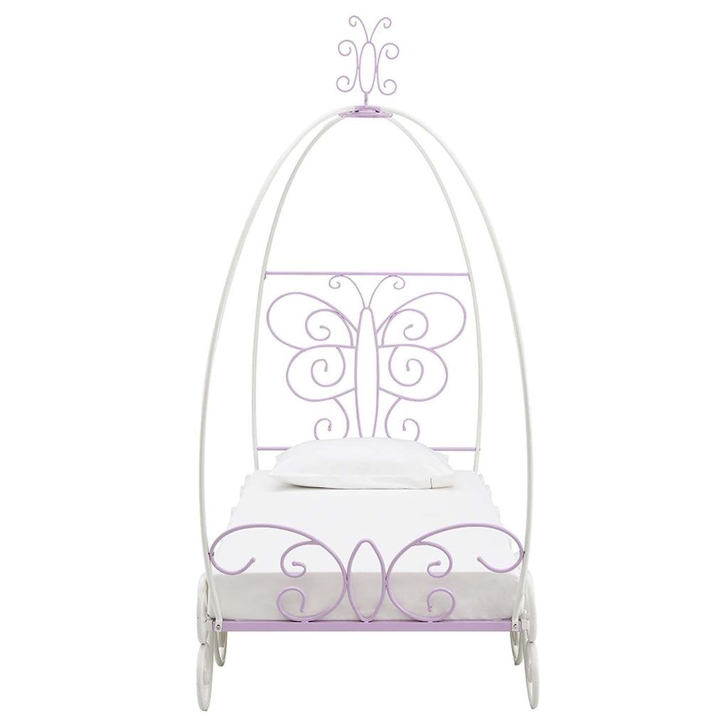 The Priya Canopy bed will create a wonderland in your princess's room. Features: metal butterfly design in a warm purple and white finish. A crown on top of the frame adds the charm and beauty into this enchanting bed.