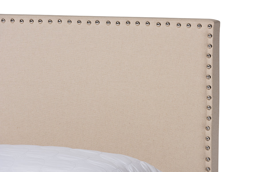 With its simple and refined design, the Marana bed is a timeless addition to any bedroom. Constructed from sturdy wood, the Marana is upholstered in an elegant, neutral linen-like fabric that complements any color palette. Ample foam padding ensures comfort and safety, while silver nailheads accentuate the clean lines on the headboard. Black tapered feet complete the look. This bed requires a box spring for use. The Marana bed is made in Malaysia and requires assembly.