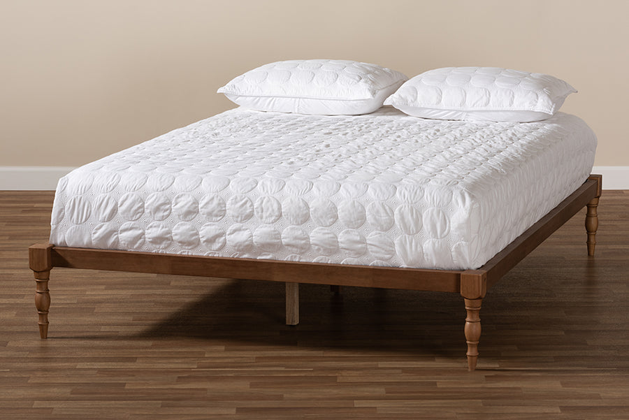 Keep your bed setup cool and casual with the Lakota bed frame. Crafted from solid rubberwood, the Lakota features a classic walnut brown finish that complements any color palette. Its low platform provides a modern feel, while turned legs lend an old-world charm. Add some crisp white sheets and plush duvet to create a cozy retreat. This bed includes wood slats, which eliminate the need for a box spring. The Lakota bed frame is made in Malaysia and requires assembly.