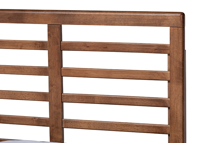 Bring depth and levity to your bedroom with the contemporary Jasper bed. The Jasper bed features a wide-set slat headboard comprised of ash walnut finished wood, ideal for providing a light and open feel in smaller spaces. Made in Malaysia, the bed includes an upholstered platform base fitted with wooden slats, eliminating the need for a box spring. The Jasper requires assembly and comes with six pre-drilled holes on the headboard to provide five unique height options for a customized setup. Bring a cozy yet stylish ambiance to any bedroom with the inviting Jasper bed.