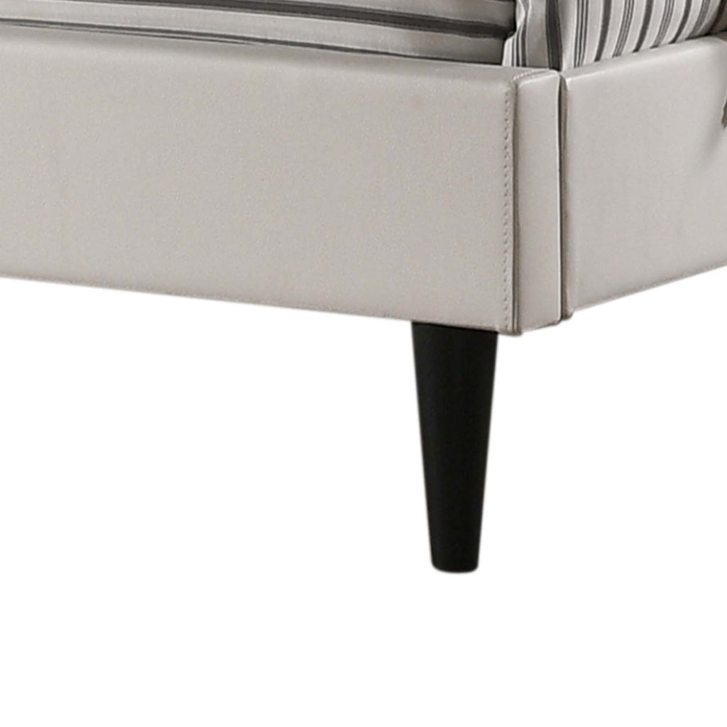 This bed delivers a refined, contemporary look with its diamond-tufted headboard and softly padded frame. The tailored silhouette adds a touch of sophistication, while the tapered legs provide a modern, elevated finish. Designed for both comfort and style, this bed creates a sleek and inviting focal point for any bedroom.