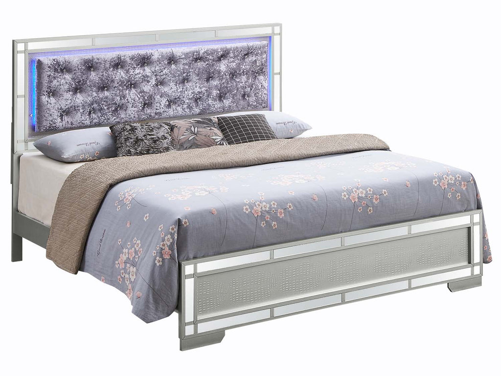 This statement bed blends modern glamour with everyday comfort, creating a centerpiece that instantly elevates your space. The generously padded, button-tufted headboard offers a plush backdrop for relaxing, reading, or unwinding at the end of the day. A softly illuminated accent surrounding the headboard adds visual drama and creates an inviting nighttime atmosphere without overpowering the room. The sleek, structured frame enhances the bed’s contemporary appeal while maintaining a balanced, grounded presence. Subtle detailing along the headboard and footboard introduces texture and depth, giving the design a refined yet approachable look. Thoughtful proportions ensure the bed feels substantial without overwhelming your layout.