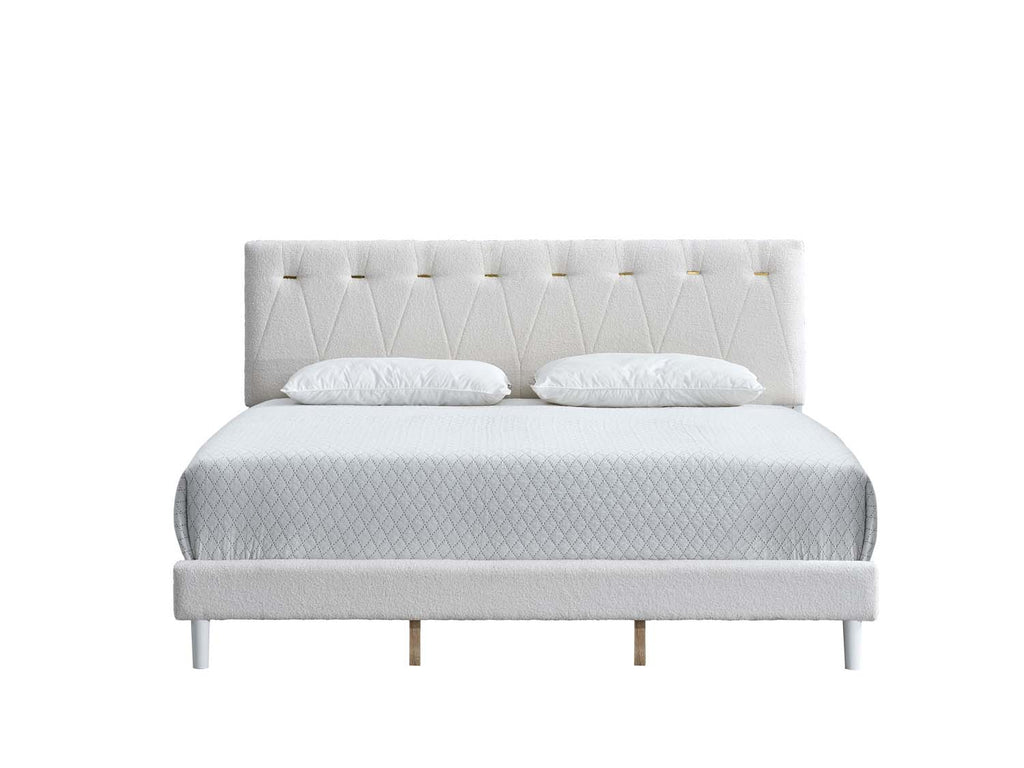 This platform bed is thoughtfully designed to create a sophisticated and relaxing bedroom environment. Its construction and materials have been selected to provide both style and comfort. The bed features a soft teddy bear wheat color fabric, which adds a warm and inviting touch to any bedroom. The tufted upholstery is accented with gold tone inserts, enhancing the bed’s elegant appearance. This platform style bed includes a complete wood slat kit, eliminating the need for a separate foundation or boxspring. The slats provide reliable support for your mattress and make setup straightforward. Available in Twin, Full, Queen, and King sizes, this bed ships quickly and conveniently in a single box. Please note that assembly is required upon arrival.