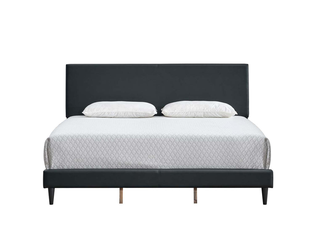The Baron Platform Bed showcases a sleek profile wrapped in smooth faux leather, bringing a clean, tailored look to any bedroom. Its streamlined edges create a contemporary finish that complements a variety of decor styles. This piece is designed for lasting support and ease of use, featuring sturdy slat construction for queen-size mattresses between 7 and 13 inches in height. The headboard adjusts in height to accommodate your preferences, while the fully upholstered frame softens the bedroom atmosphere with its inviting presence.
