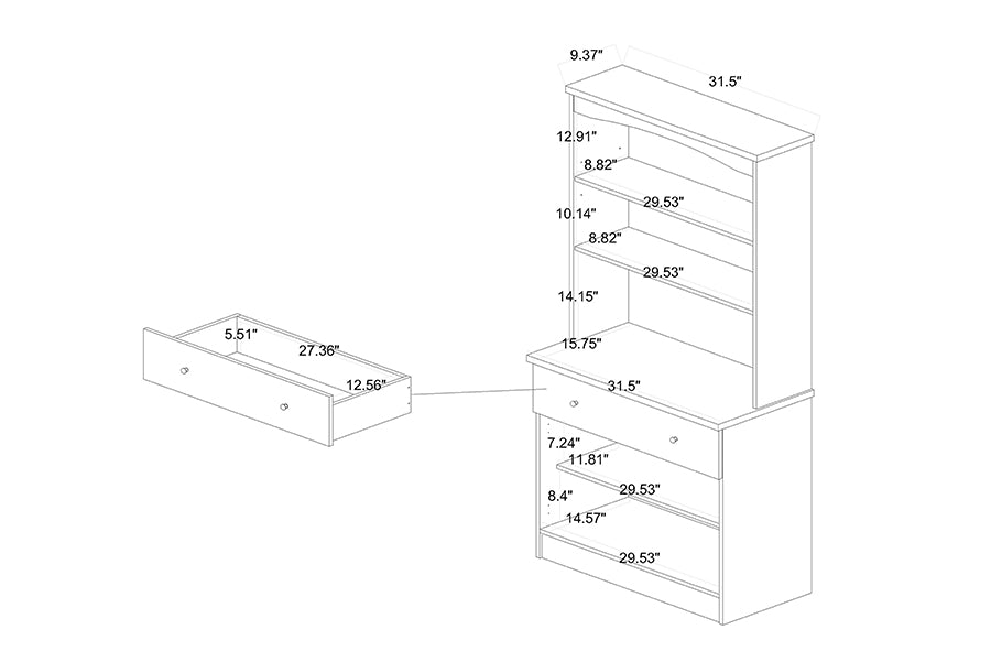 Product Dimensions: Dimensions: 70.2" High x 31.5" Wide x 15.75" Deep; Drawer: 5.51" High x 27.36" Wide x 12.56" Deep; Top Shelf Behind Door: 7.24" High x 29.53" Wide x 11.81" Deep; Bottom Shelf Behind Door: 8.40" High x 29.53" Wide x 14.57" Deep; Top Open Shelf: 12.91" H x 29.53" Wide x 8.82" Deep; Middle Open Shelf: 10.14" High x 29.53" Wide x 8.82" Deep; Bottom Open Shelf: 14.15" H x 31.50" Wide x 15.75" Deep;