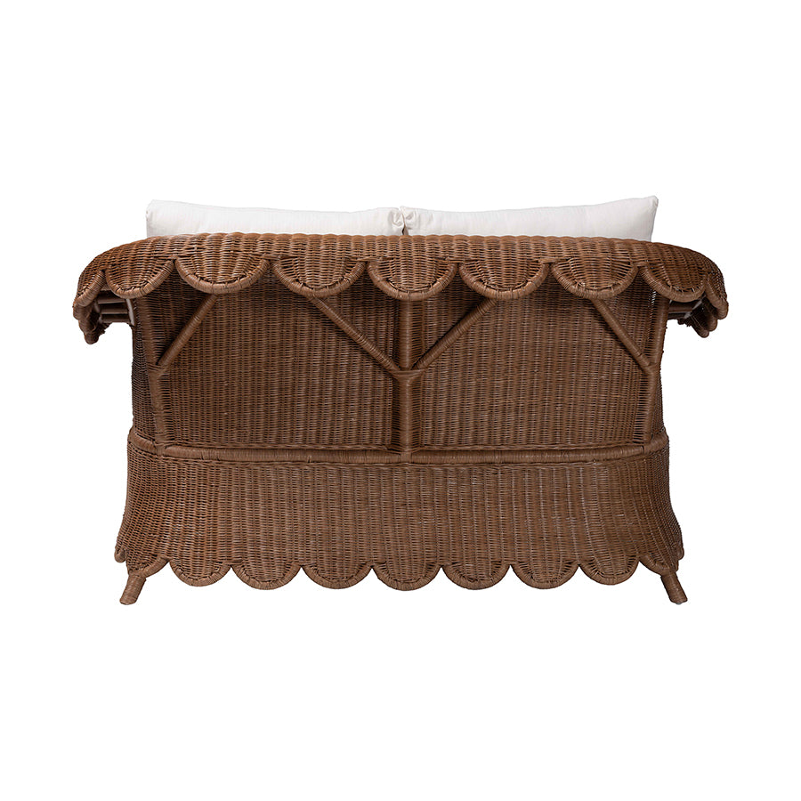 The artistic flair of paradise permeates every aspect of the stunning Contantine loveseat. Made in Indonesia, this bohemian piece is handcrafted from sustainably sourced natural rattan. Its rounded frame forms elegantly sloping armrests for added comfort while beautifully scalloped borders create a vibrant presentation from every angle. The Contantine will arrive fully assembled and is fitted with removable cushions padded with plush foam and upholstered in soft fabric for superb comfort. Delivering the tranquility of an exotic hideaway, the Contantine loveseat uplifts any setting.