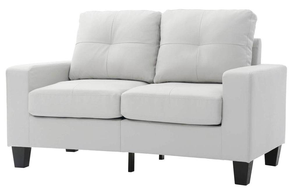 This modern loveseat offers a perfect balance of simplicity and comfort, making it an easy addition to a wide range of interiors. The streamlined silhouette and gently cushioned back create a relaxed, inviting look that feels fresh without being overly formal. Subtle panel detailing adds dimension while maintaining a calm, uncluttered appearance. Generously padded seat and back cushions provide supportive comfort ideal for daily use, whether you’re enjoying a quiet evening or sharing the space with a guest. The squared arms offer a structured feel while still allowing room to settle in comfortably. Raised legs give the loveseat a light, open presence, helping smaller rooms feel more spacious.