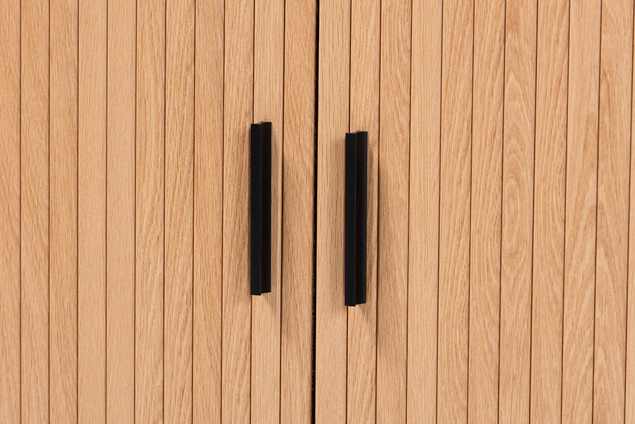 - Fluted Wood Exterior : Vertical slats adorn the doors with crisp geometric allure emblematic of robust style