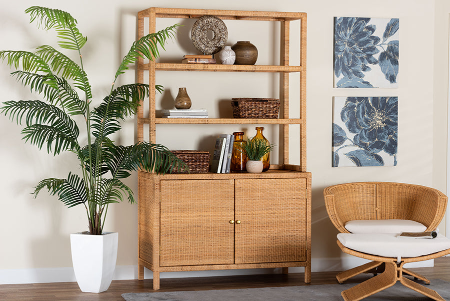 Create an impressive presentation in your home with the remarkable Elda storage cabinet. Made in Indonesia, this bohemian piece consists of a solid mahogany wood frame embellished with sustainably sourced natural rattan. Four open shelves create a fantastic display area perfect for showcasing a variety of decor while two interior shelves offer secure storage. The Elda will arrive fully assembled and is fitted with round metal door knobs that add a touch of classic beauty to the piece. With its bold yet streamlined silhouette, the Elda storage cabinet is sure to enhance any layout.