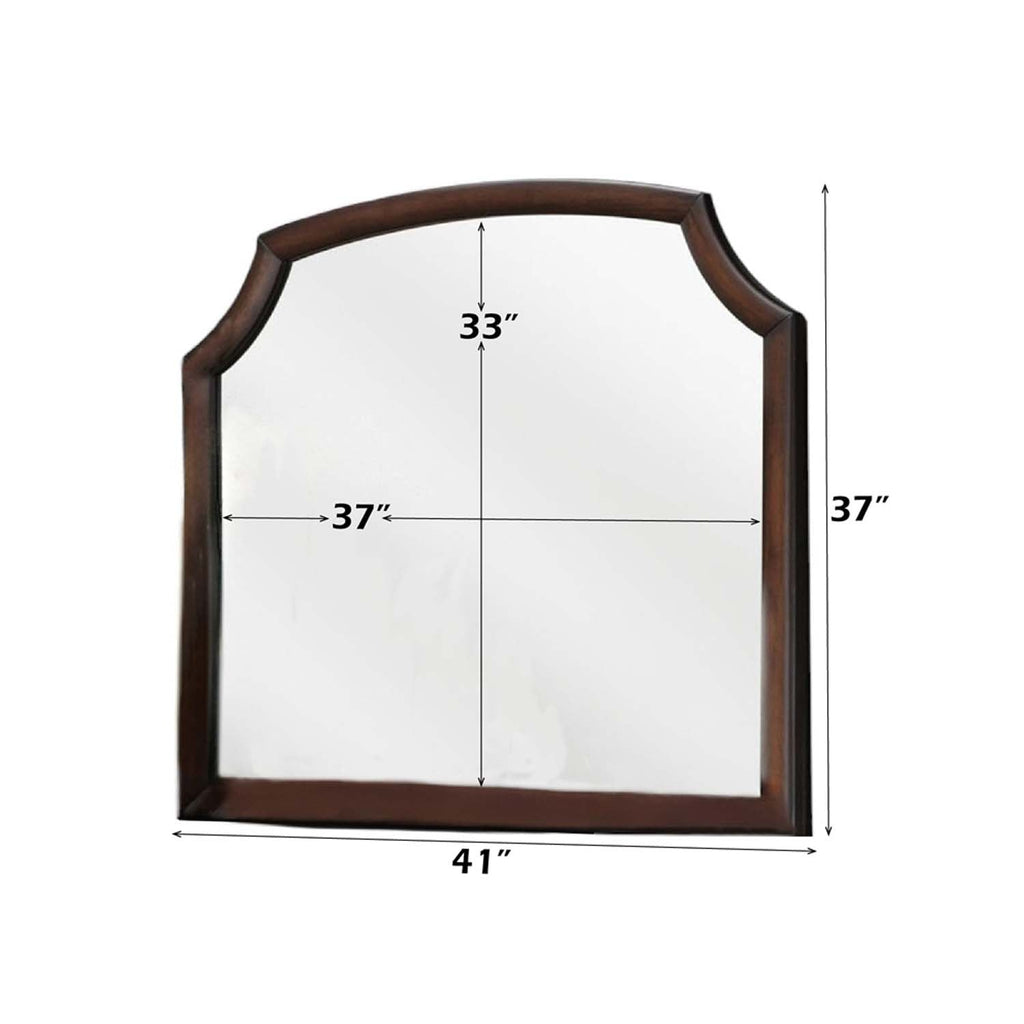 The Lancaster mirror is in espresso finish. The distinctive shape of the mirror will give the bedroom a fresh look. Create unique and modern flair to your bedroom with this transitional mirror.
