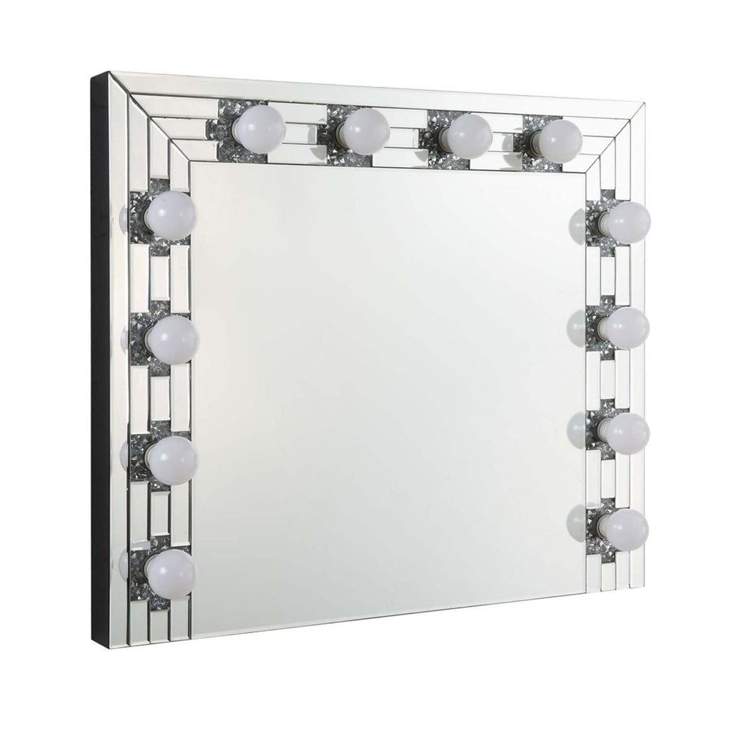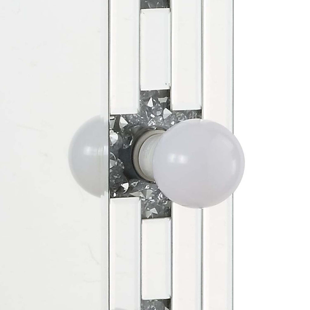 Feel fabulous with every glace and always be the star of the show with the Noralie Hollywood mirror. This mirror will change the way you do your hair and makeup, making the entire experience much more enjoyable. This vanity mirror is designed for wall-mount use. The inlaid faux diamonds add more dazzle to the piece. *Bulbs Not Included
