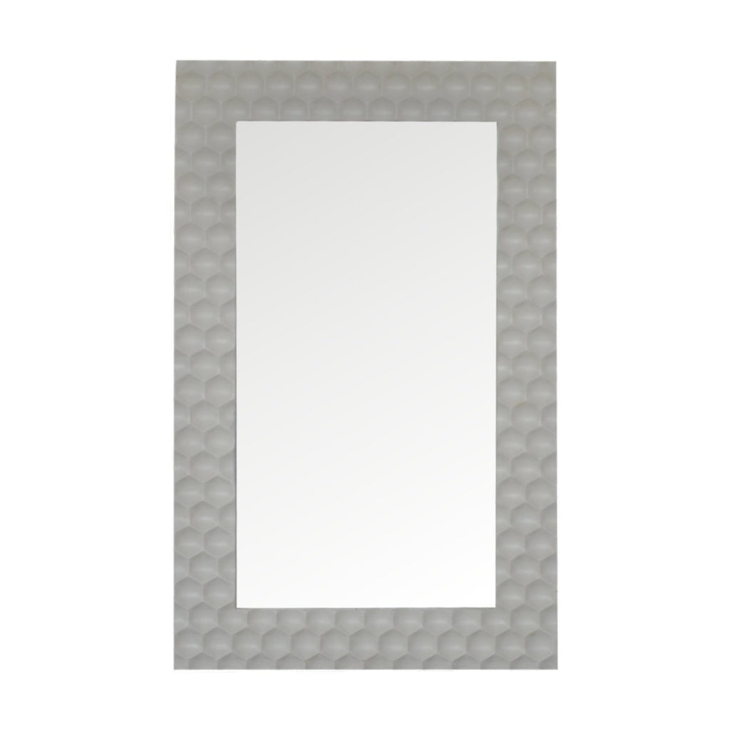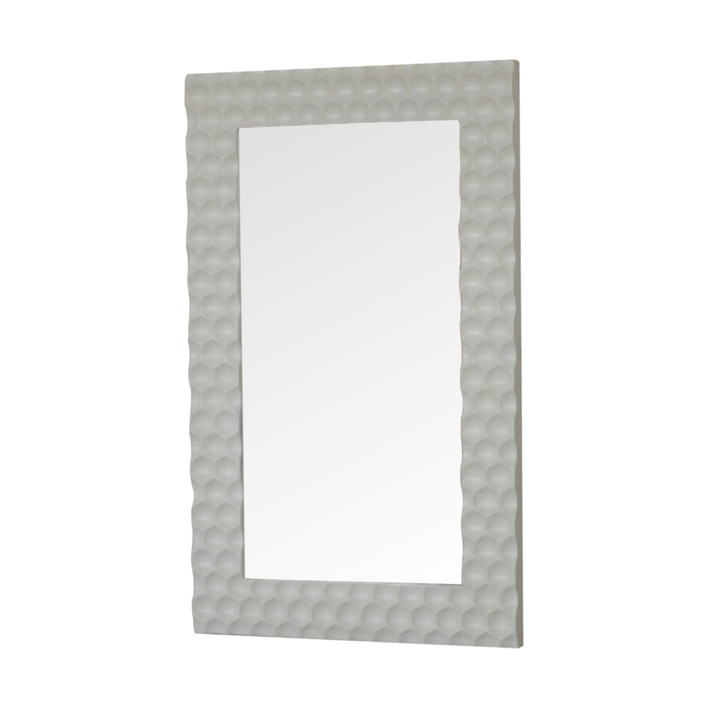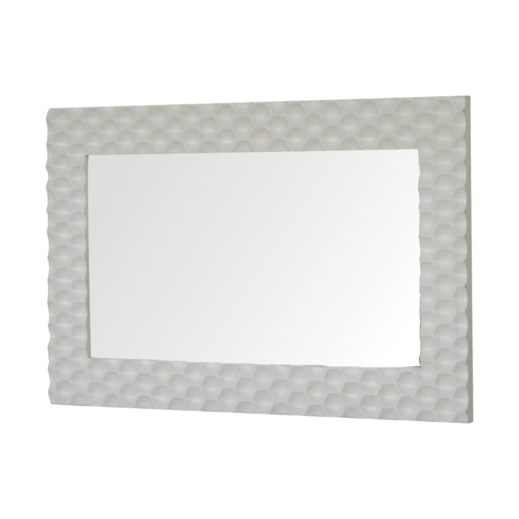 This high-quality rectangular shaped white hand painted mirror has been fitted into a beautiful and elegant honeycomb hand carved mirror frame. It is perfect for most bedrooms, hallways, and living rooms, and is made to become the main focus in any setting. It is both a wall mirror and a leaning mirror and can be used vertically or horizontally, It can be used alone as an accent piece or be partnered with the other pieces from the honeycomb collection.