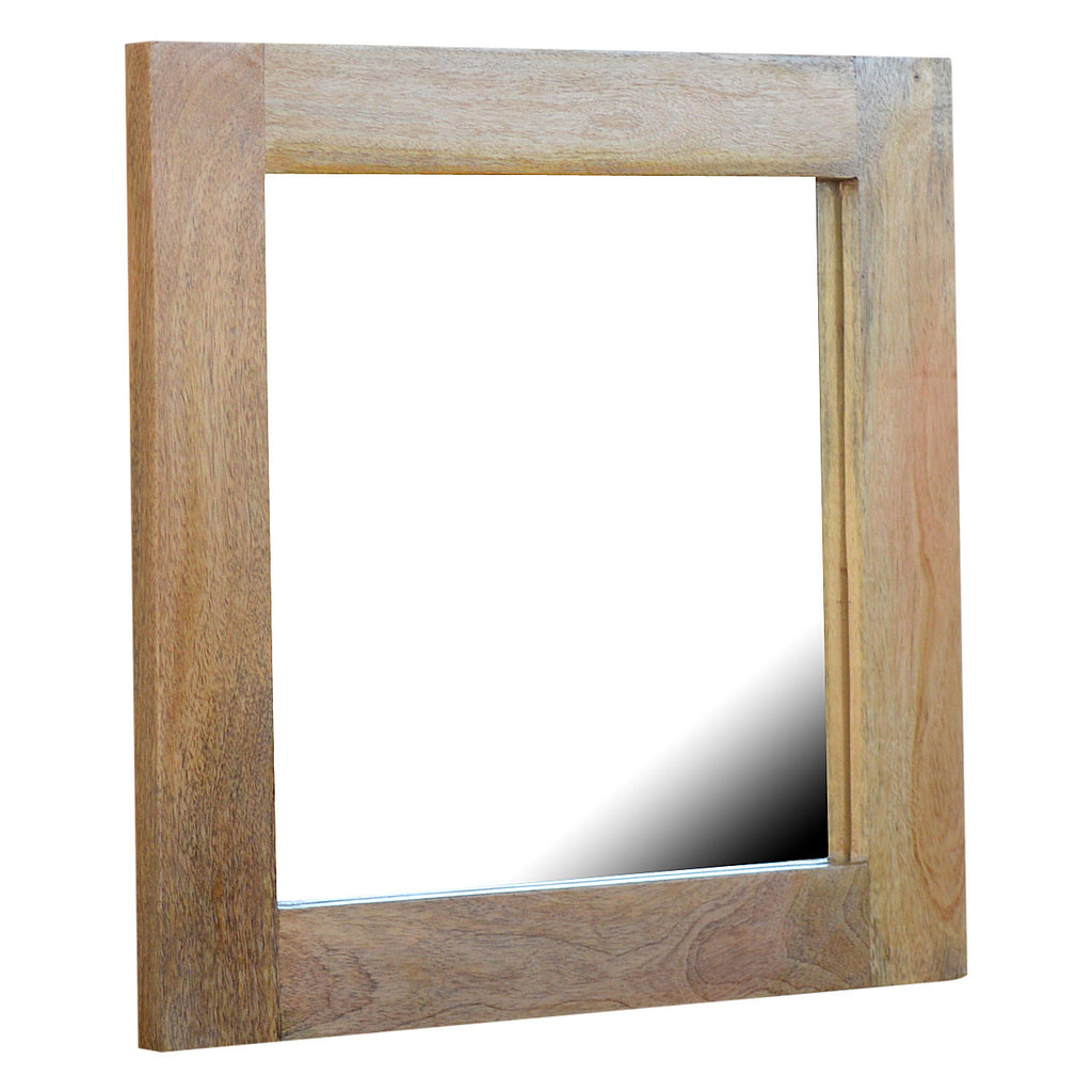 This high quality square mirror is fit into a handcrafted solid mango wood frame with an oak-ish finish. It is a simple and versatile piece which will sit beautifully in any room in your home. It can also be incorporated with any type of interior as it has both a modern and rustic country feel. Every piece of furniture is individually handcrafted and includes swing care tickets explaining the cautions and aftercare instructions.