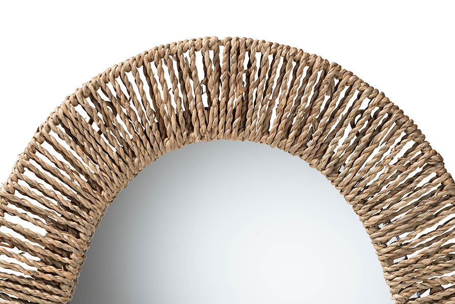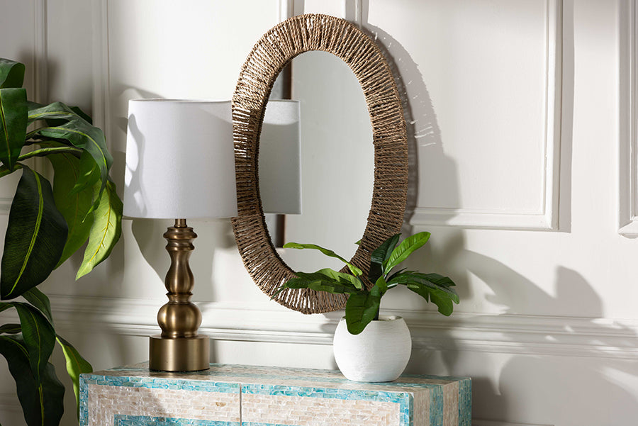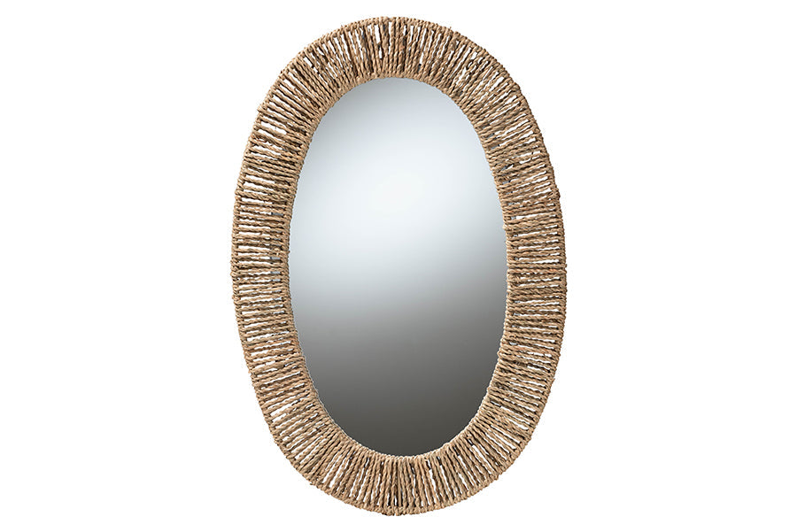 Nurture an air of rustic serenity in your space with the exquisite Katherine accent wall mirror. Made in Vietnam, this bohemian piece consists of a large central mirror encased within a metal frame wrapped in natural seagrass. The smooth curves of its oval silhouette exude soothing geometry while woven embellishments lend visual texture. The Katherine will arrive fully assembled and is wall mountable. Capturing the poise of an exotic retreat, the Katherine accent wall mirror refreshes any space.