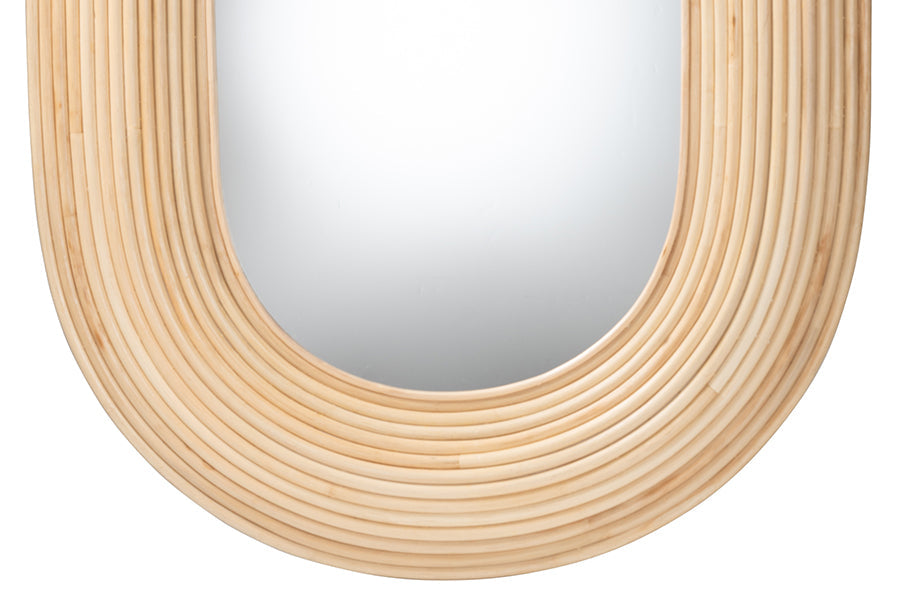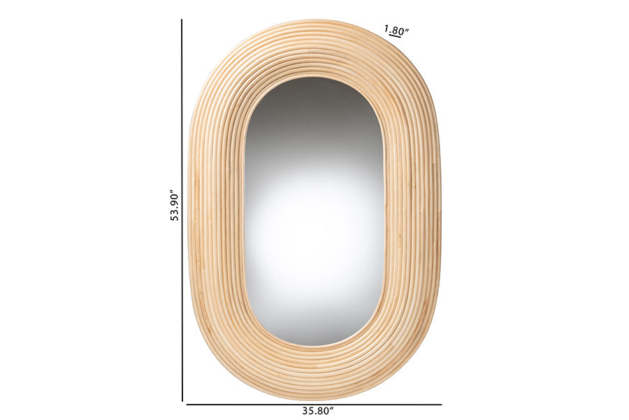 Take hold of an air of rustic grace with the stunning Nevio accent wall mirror. Made in Indonesia, this bohemian piece consists of a handcrafted rattan frame fitted with an oval-shaped central mirror. The smooth ridges of the rattan interlaid within the frame create soothing geometric allure that refreshes any space. The Nevio will arrive fully assembled and is wall mountable. Elevating modern settings with exotic refinement, the Nevio accent wall mirror invigorates any layout.