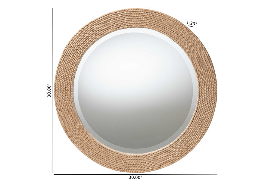 The classic allure of breezy beachside style is imbued in the lovely Orianthe accent mirror. Made in Vietnam, this coastal piece consists of a wood frame embellished with woven rope. Its round silhouette features a unique texture of braided rope for a rustic display showcasing the intricate craftsmanship of the piece. The Orianthe will arrive fully assembled and is wall mountable. A modest yet enchanting fixture, the Orianthe accent mirror is sure to refresh any layout. Disclaimer: Jute is a product of nature and may have variations in areas such as, but not limited to, color, pattern, grain and texture. The hair-like strands of wicker/wicker-like fiber are common due to the nature of the material.