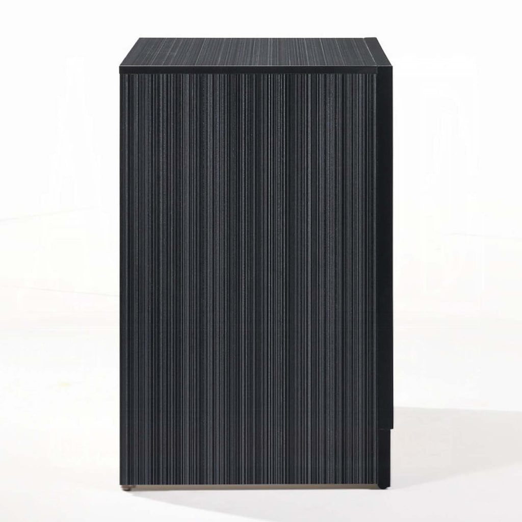 The Naima nightstand offers a sophisticated look, clean lines and contemporary style. This black nightstand features three drawers, with the middle drawer being a Felt-Lined jewelry drawer with compartments and front panel with crystal like inserts. Add this nightstand to your bedroom to provide an elegant style that will bring you a perfect sleek design.