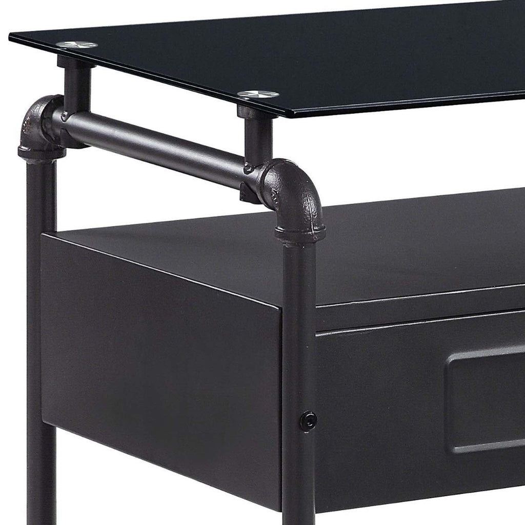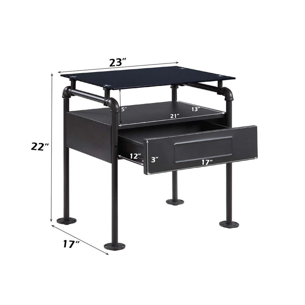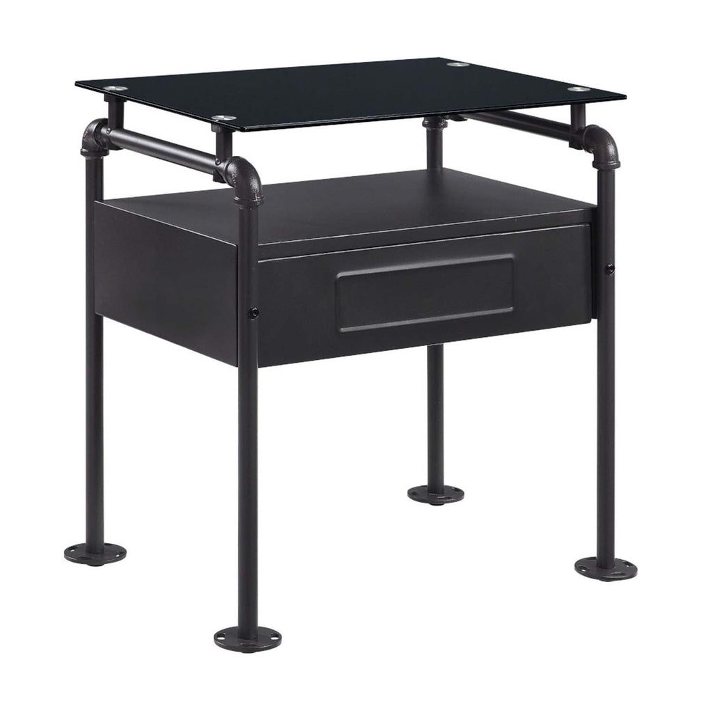 Nicipolis Nightstand, Glass & Sandy Gray Finish