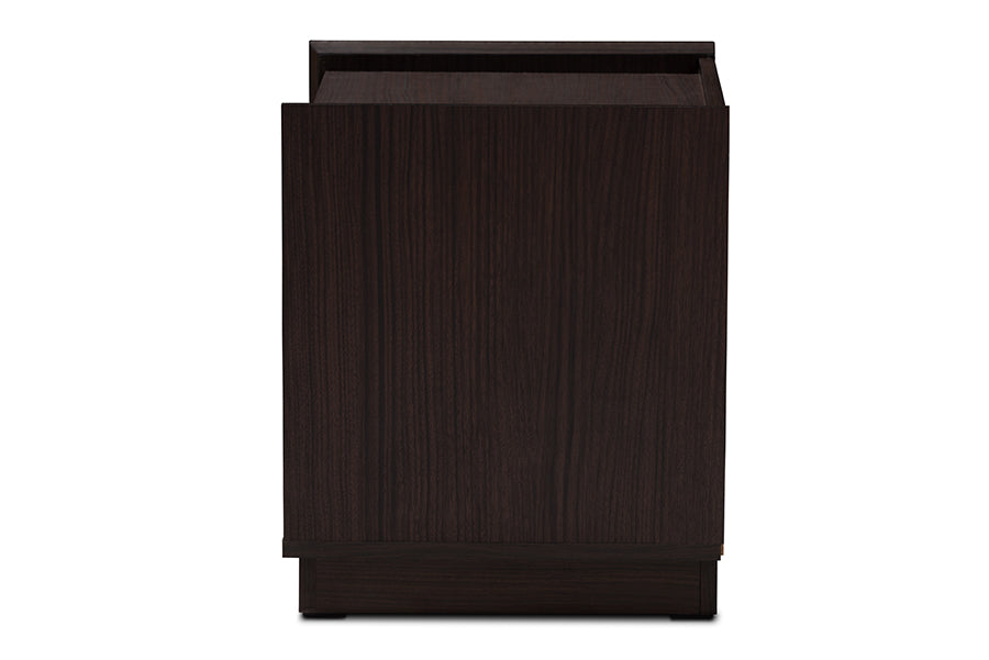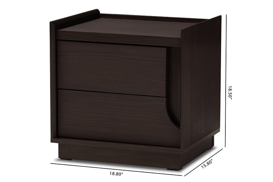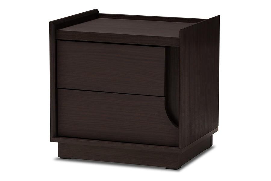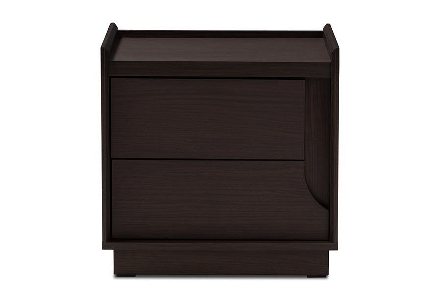 The Merryn 2-drawer nightstand is just the right blend of unique, modern, and dynamic. The modern and contemporary-inspired design is both on trend and lasting. The Merryn's engineered wood frame is finished all over in brown, with two drawers. The nightstand features a cut-out design on the side of the drawer faces that ends in a curve on the bottom drawer. This design provides convenient handles for the drawers, and a unique, flowing look to coordinate with the decor in your bedroom, guest room, or even your entryway. The top of the Merryn has slightly raised edges, making it easy to use as an extra shelf space for decor and storage. Complete the look with other products in the Merryn range. Made in Malaysia, the nightstand requires assembly.