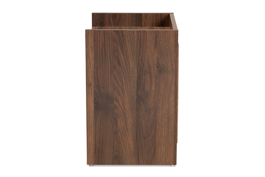 Add a clean, modern accent to your bedroom with the Lesia nightstand. Made in Malaysia, the Lesia is comprised of a walnut brown finished wood frame fitted with one compartment behind a door to efficiently organize all your bedside essentials. Its tabletop is enclosed on three sides to keep items securely in place. Requiring assembly, the minimalist design of the Lesia makes it easy to integrate into a wide variety of room layouts. With a simple yet practical design, the Lesia nightstand is a handy upgrade to the modern bedroom.