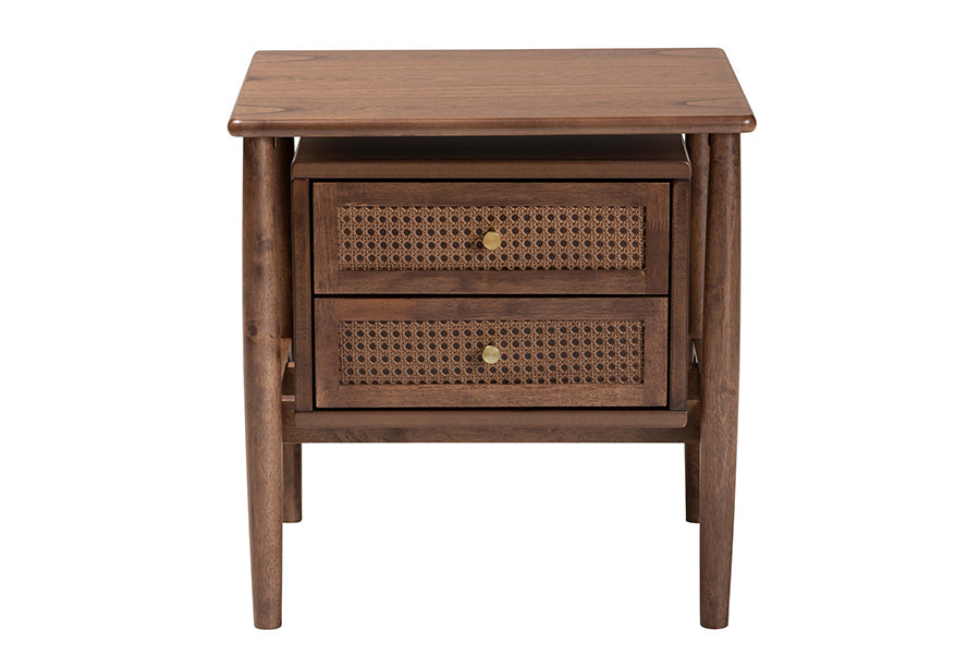 Attain an environment of serene yet versatile grace with the stunning Jessen nightstand. Made in Malaysia, this Japandi inspired piece consists of a sturdy wood frame embellished with woven rattan adornments. Two drawers offer space to organize all your bedside essentials while reserving the tabletop for nightly use. The Jessen requires assembly and is affixed with round metal knobs that stand out brilliantly against the warm wood tones. The open design of the frame creates a captivatingly rustic display, making the Jessen nightstand a fantastic bedroom fixture.