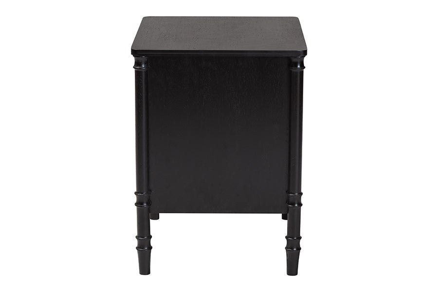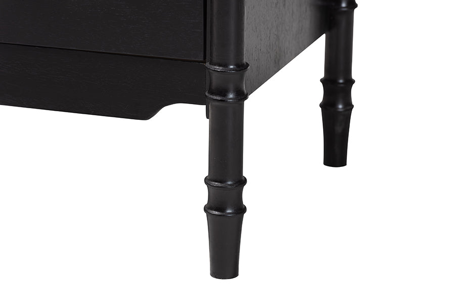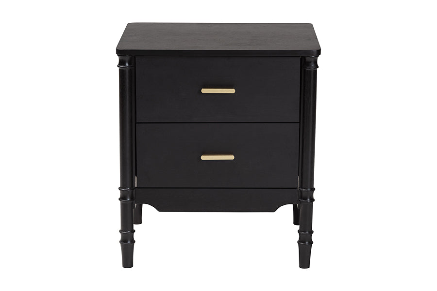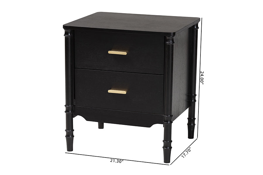 The beautiful Matilde nightstand adds an element timeless grace to any setting. Made in Malaysia, this mid-century inspired piece is crafted from sturdy wood. Two drawers offer ample space to organize all your bedside essentials while reserving the tabletop for nightly use. The Matilde requires assembly and is affixed with metal handles that that accentuate the elegant nature of the piece. Turned embellishments on each leg reminiscent of bamboo stalks accentuate the intricate detail, making the Matilde nightstand an outstanding bedroom addition.