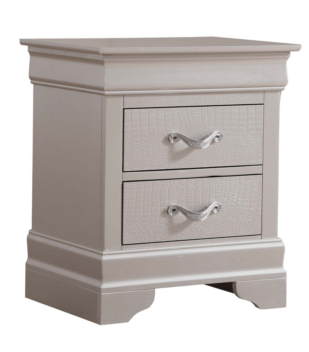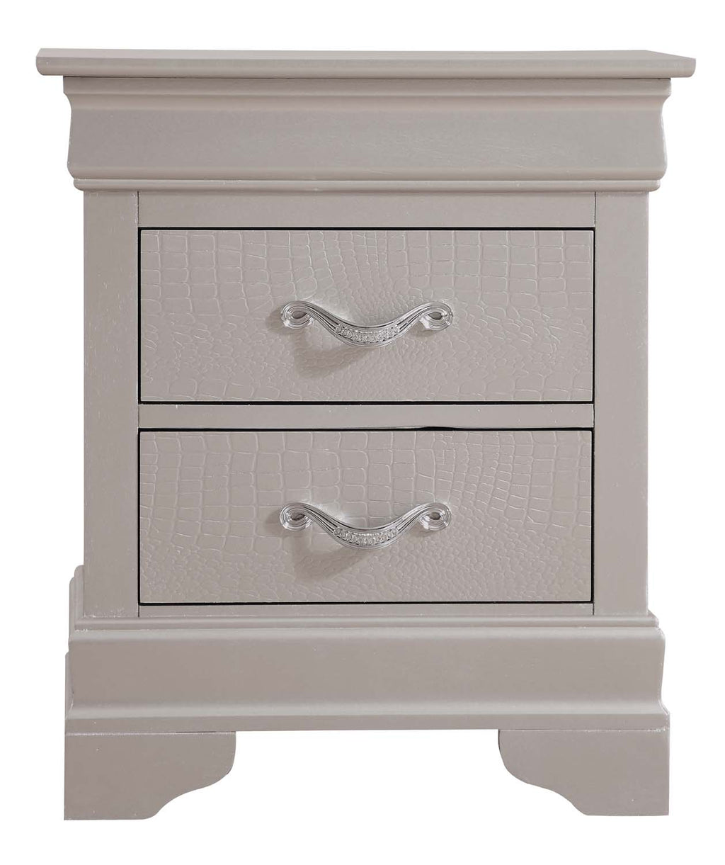 Assembled 2 Drawer Nightstand is Finished in Real Wood Veneers over Manufactured and Solid Wood. Drawers Move on Center Supported Metal Guides and Are Dovetailed Front and Back. Corner Blocks are utilized to Support Drawer Bottoms. Additonal Case Pieces are Available as well as Matching Beds