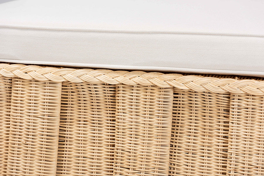 Product Dimensions: Overall Ottoman Dimensions: 40.20" W x 40.20" D x 16.50" H; Seat(w/o removable cushion): 34.60" W x 34.60" D x 16.50" H(from floor);Handwoven Rattan : Elegantly arranged natural rattan adds coastal charm with a light airy aesthetic