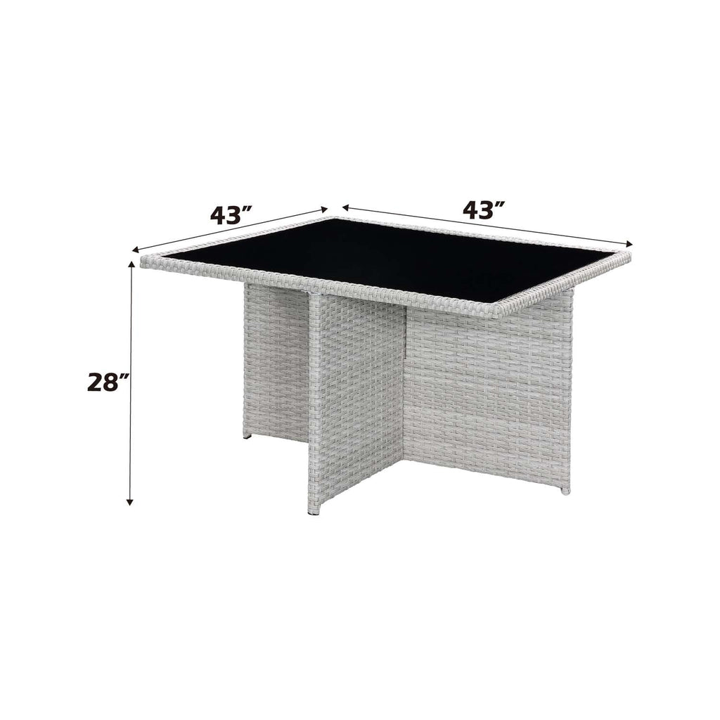 • 9Pc Patio Set: Includes 4 Arm Chairs, 4 Armless Ottomans & Dining Table
