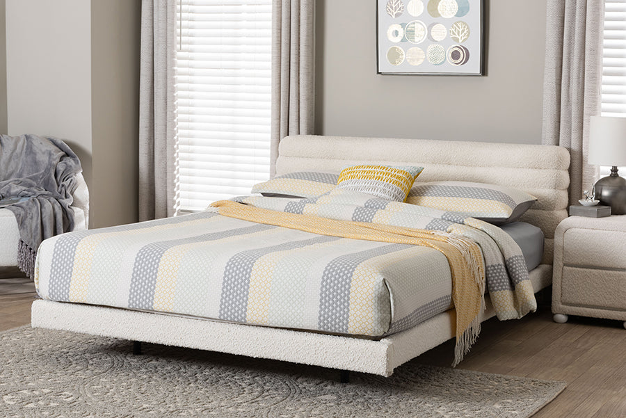 Material: Boucle Fabric "100% Polyester"/Foam/Frame: MDF+Oriented Strand Board+Plywood+LVL/LVL(Bed slats)