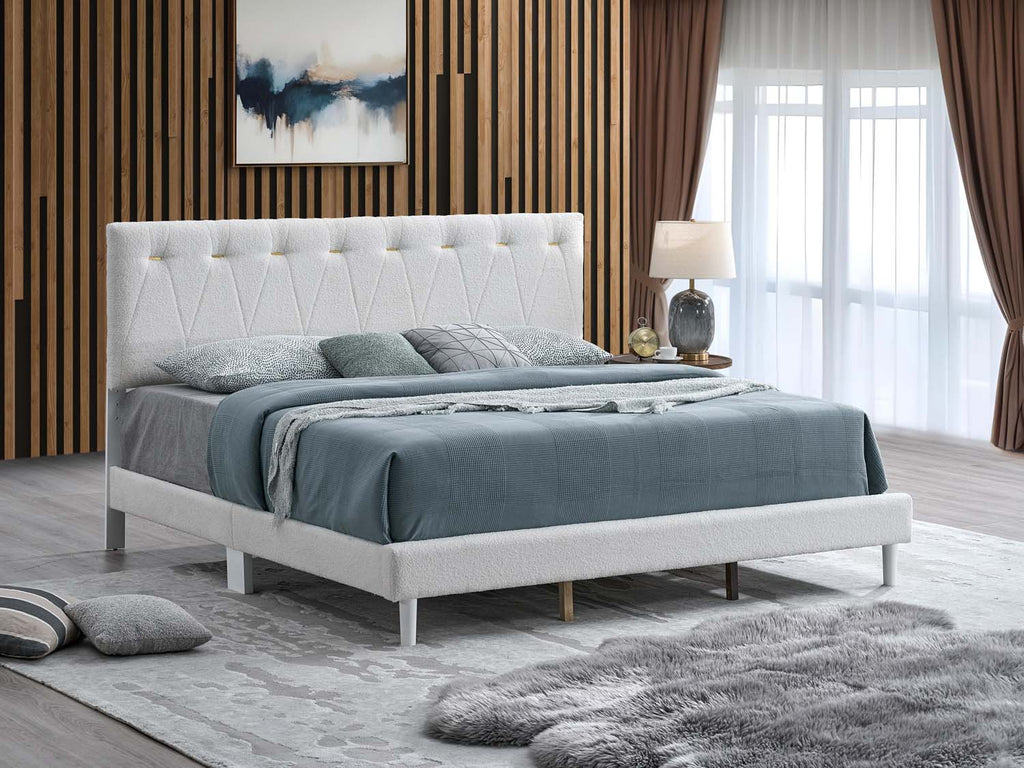 This platform bed is thoughtfully designed to create a sophisticated and relaxing bedroom environment. Its construction and materials have been selected to provide both style and comfort. The bed features a soft teddy bear wheat color fabric, which adds a warm and inviting touch to any bedroom. The tufted upholstery is accented with gold tone inserts, enhancing the bed’s elegant appearance. This platform style bed includes a complete wood slat kit, eliminating the need for a separate foundation or boxspring. The slats provide reliable support for your mattress and make setup straightforward. Available in Twin, Full, Queen, and King sizes, this bed ships quickly and conveniently in a single box. Please note that assembly is required upon arrival.