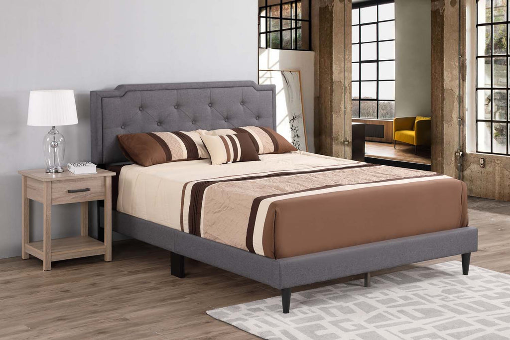 This bed adds a modern, tailored look to your bedroom with its sleek, low-profile frame and button-tufted headboard. The gently padded design offers comfortable support for reading or relaxing, while the streamlined silhouette brings a contemporary touch to any space. Supported by sturdy legs, this bed balances style and simplicity for a clean, uncluttered aesthetic.
