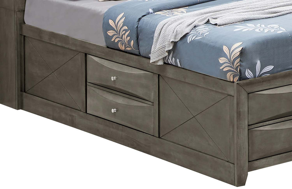 This storage bed combines smart functionality with contemporary sophistication. The headboard’s open shelves and compact drawers allow you to keep décor, books, or accessories neatly arranged, while the lower drawers provide generous room for bulkier items. Designed to reduce clutter and add efficiency, the bed’s structured frame and polished detailing make it an ideal choice for anyone seeking a stylish, all-in-one bedroom solution.